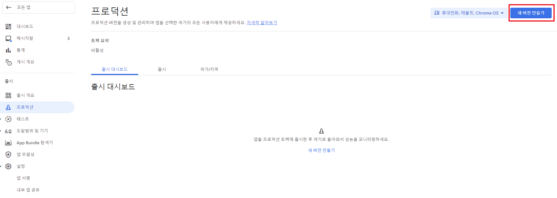 출시 대시보드를 클릭하고 새 버전 만들기를 클릭합니다.