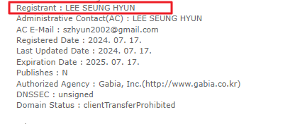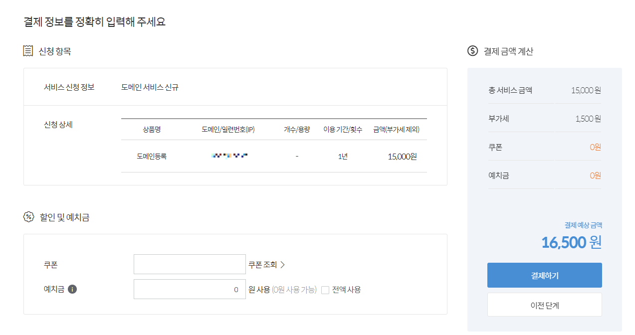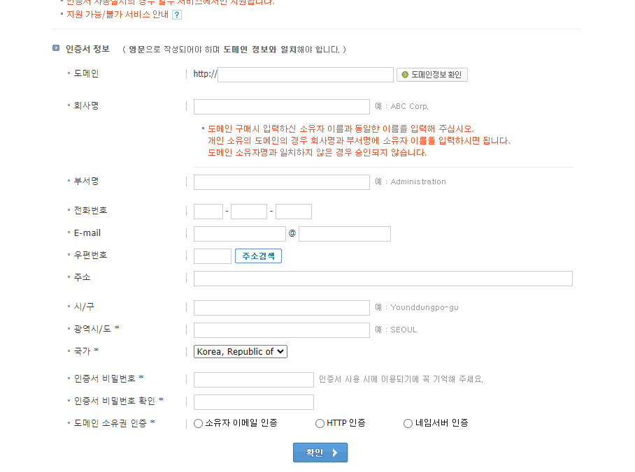 개인 소유시 회사명과 부서명은 도메인 구매시 작성한 소유자명을 입력합니다.