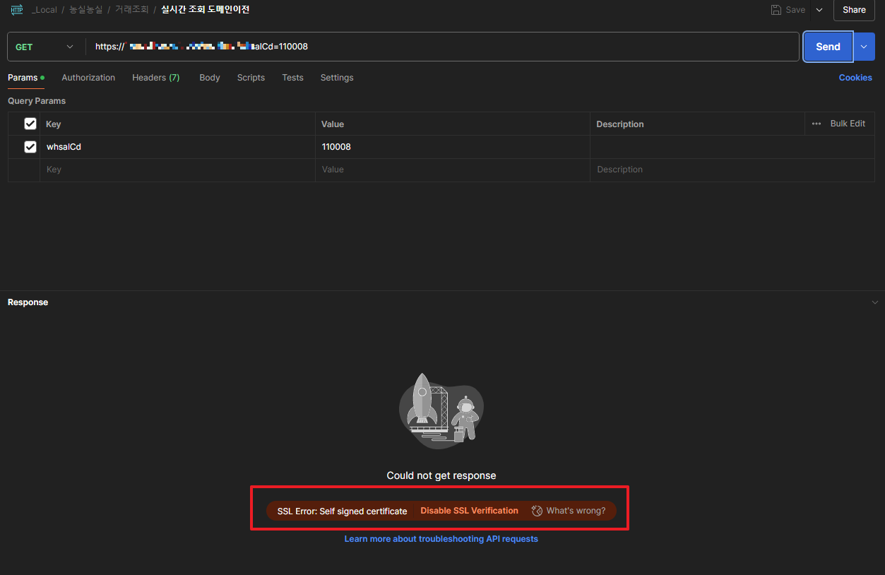 연결 후에 http 통신은 되지만 https 사용시 Disable SSL Verification 오류가 발생합니다.