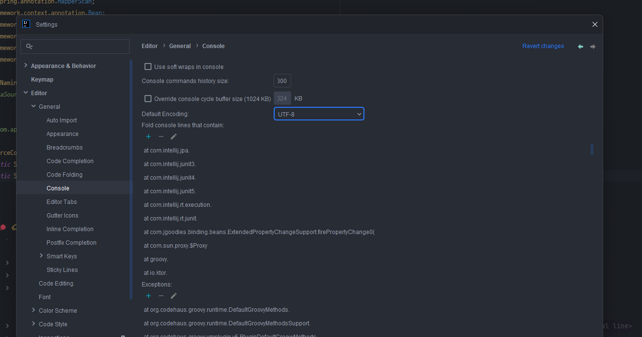 1. Settings - Editor - General - Console - Default Encoding UTF-8 확인