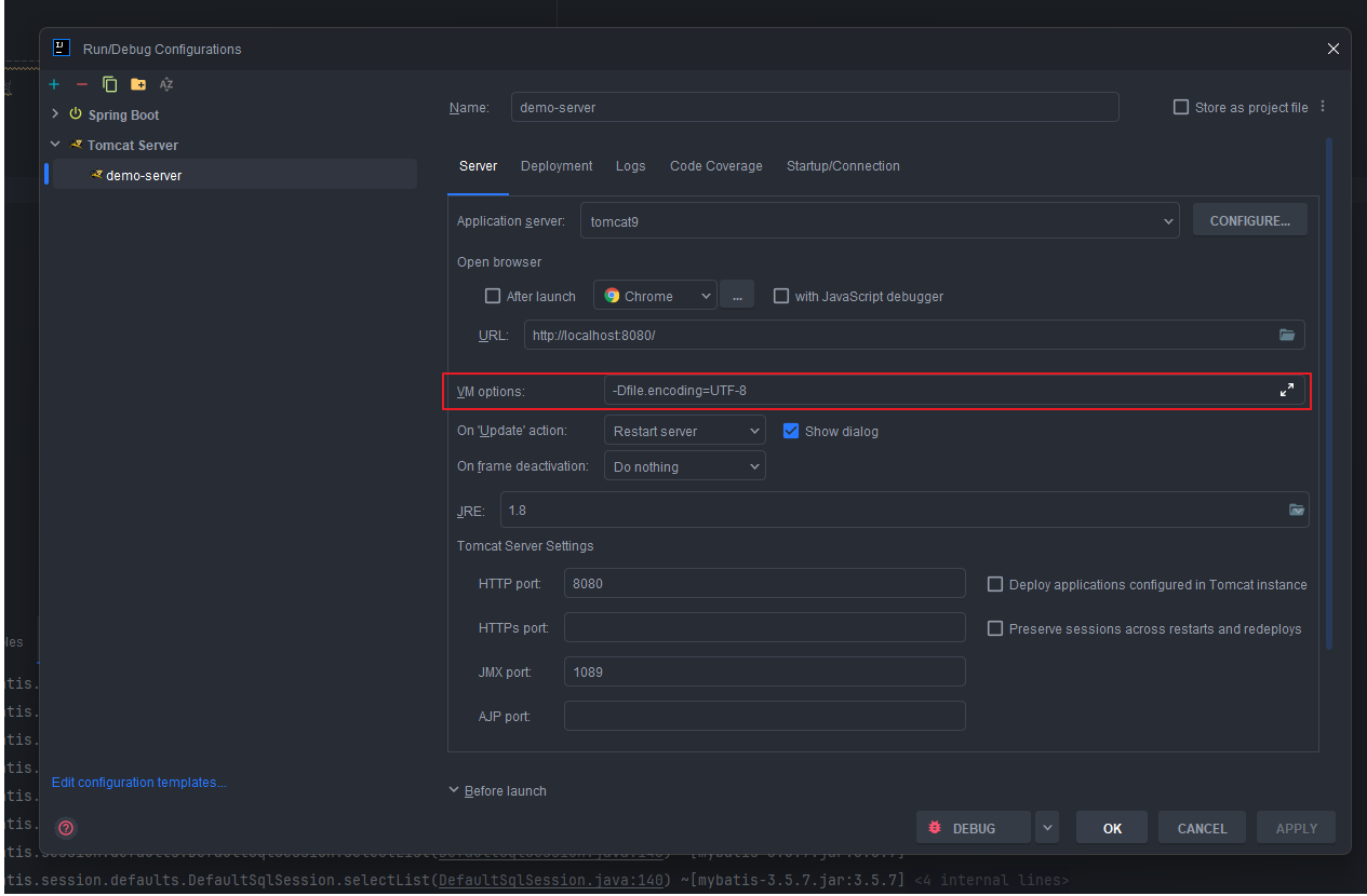 2. Server - Edit Configurations VM options: -Dfile.encoding=UTF-8 확인
