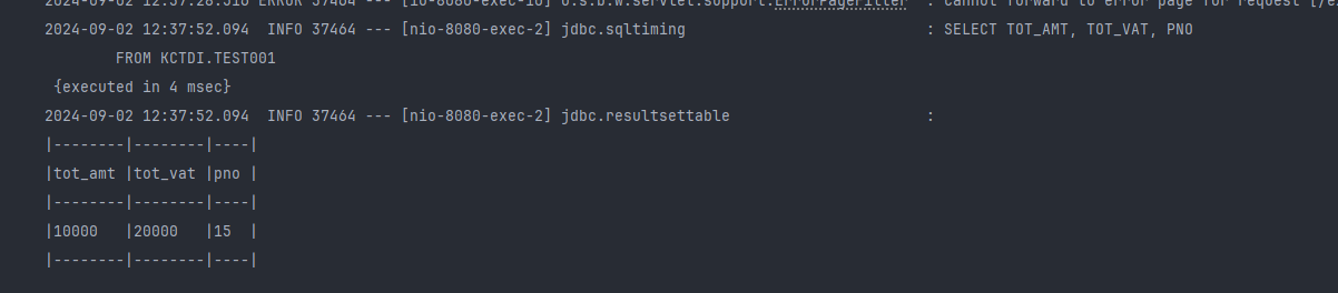 쿼리 로그를 확인하기 위해 아래 log4jdbc 설정까지 마무리하고, 컨트롤러를 호출해봅니다.