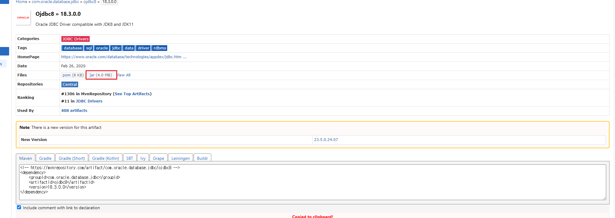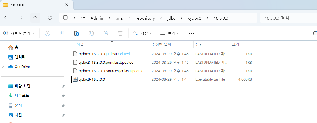 ojdbc는 저작권 문제로 Maven 추가시에도 jar파일이 생성되지 않기 때문에 따로 다운로드를 받아 아래 경로에 추가합니다.
