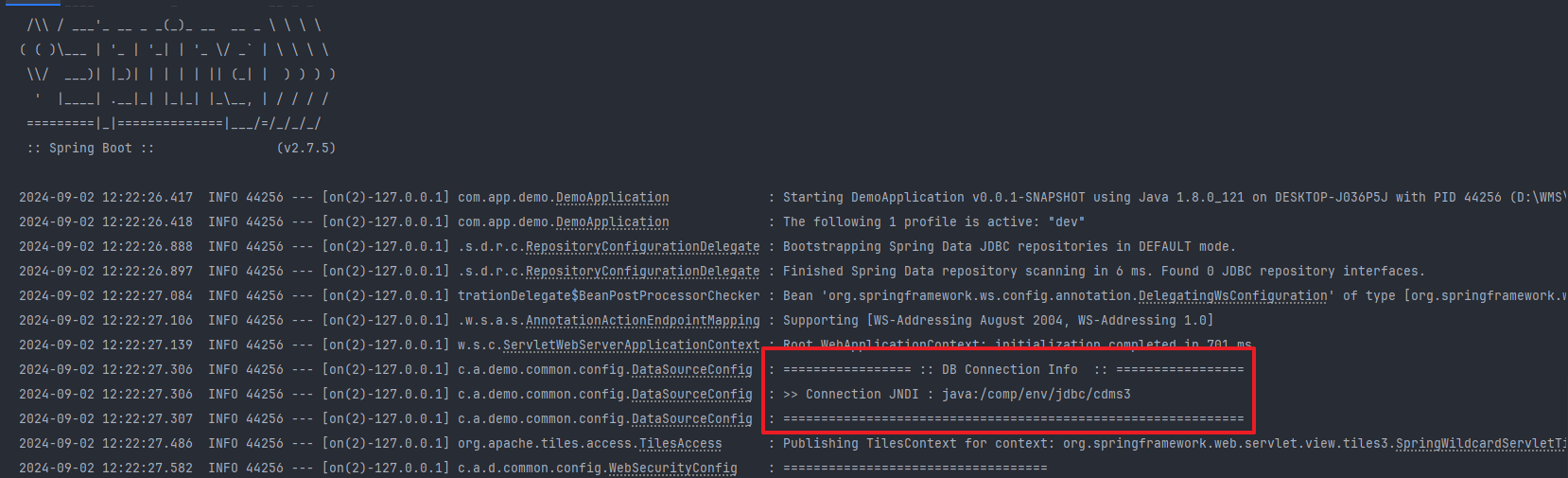 log.info(">> Connection JNDI : {} ", JNDI_NAME);
