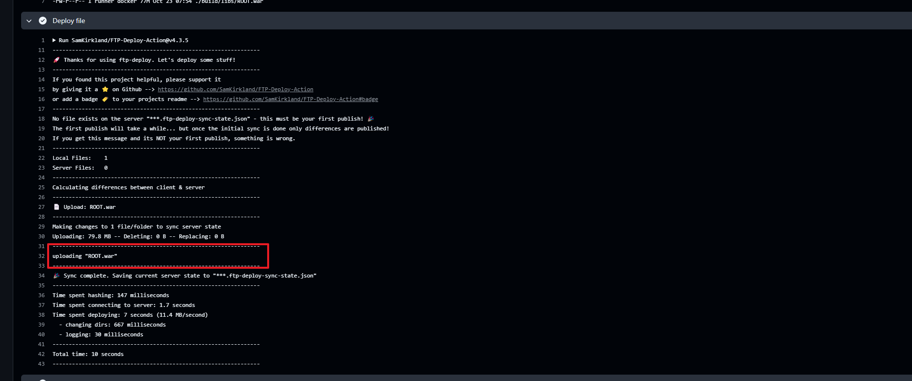 - SamKirkland/FTP-Deploy-Action@v4.3.5 : 마켓플레이스에 등록된 FTP 액션을 사용