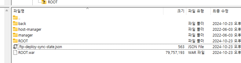 ROOT.war 파일이 정상적으로 전송된 것을 확인할 수 있습니다.