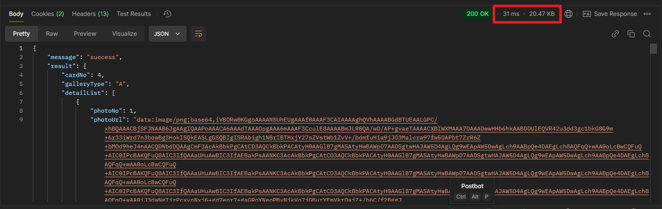 이후 다시 API를 호출해보면 응답 크기가 20KB(31ms)로 약 22배나 개선된 것을 확인할 수 있습니다.