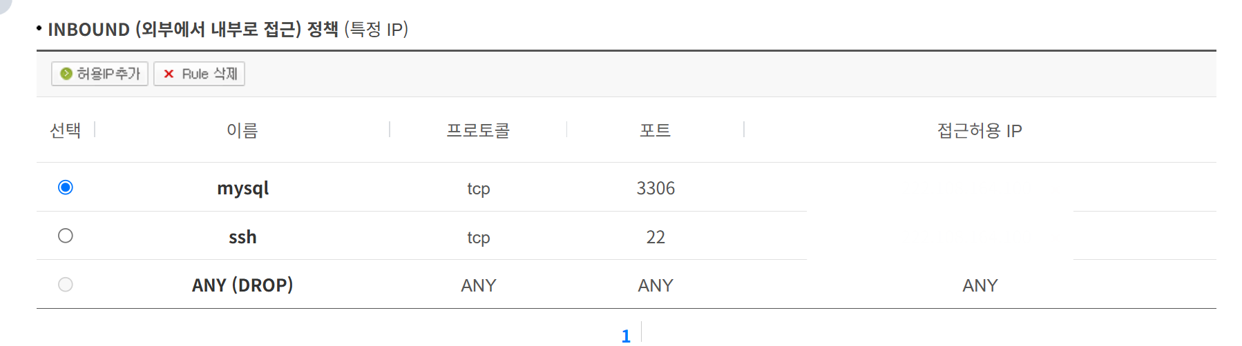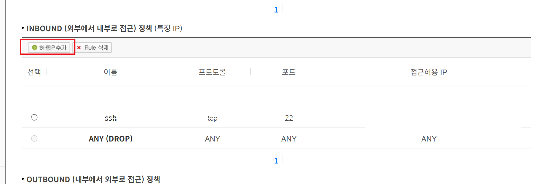 다시 ssh와 myql를 선택하여 접근허용 IP를 추가합니다.