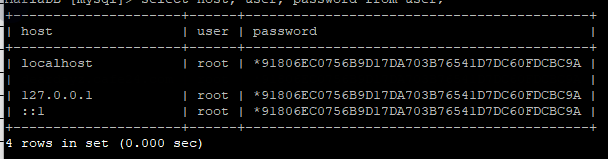 select host, user, password from user;