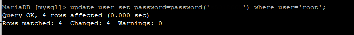 grant all privileges on *.* to 'root'@'%' identified by '패스워드 입력';