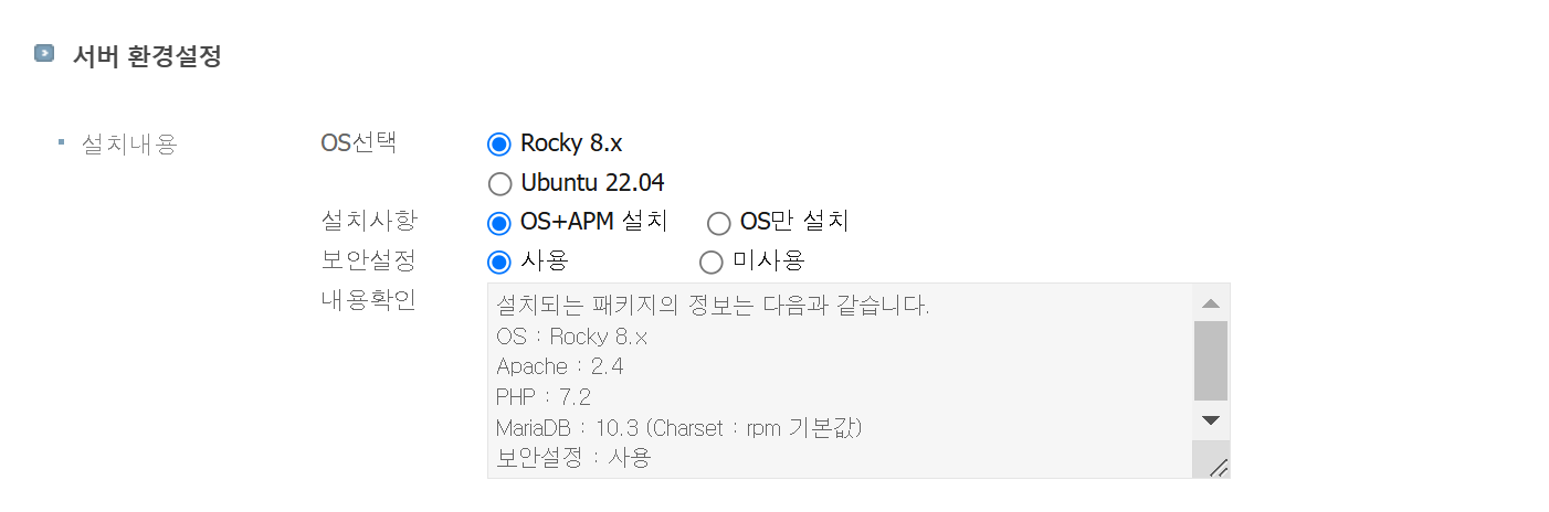 최근 테스트를 목적으로 Cafe24의 가상서버호스팅을 구매했습니다. 가장 저렴한 일반형으로 구매를 했고, Rocky, MariaDB 10이 기본적으로 설치된 설정을 선택했습니다.
