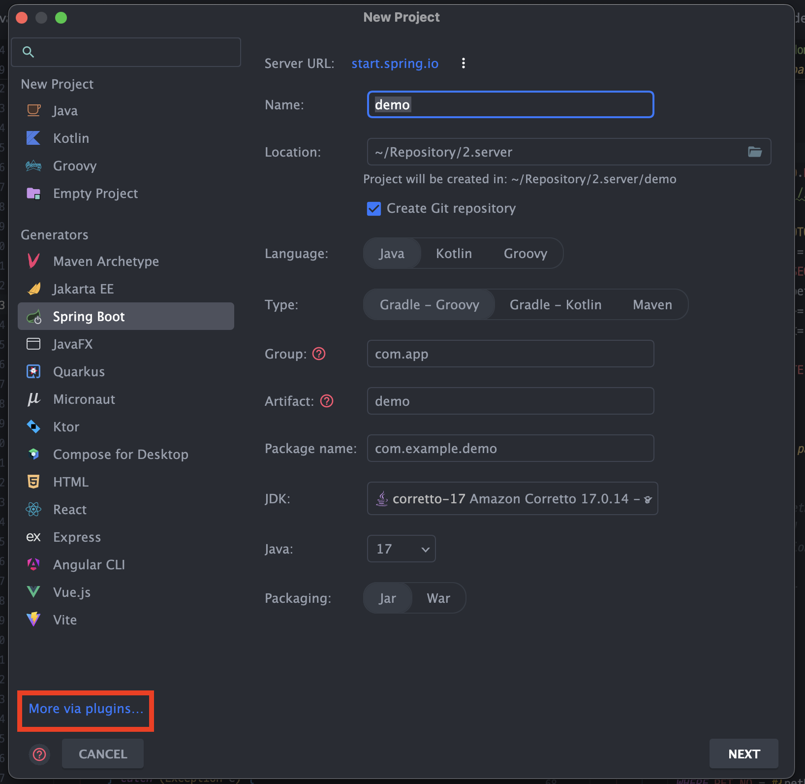 IntelliJ가 재실행되면 다시 프로젝트를 생성합니다.