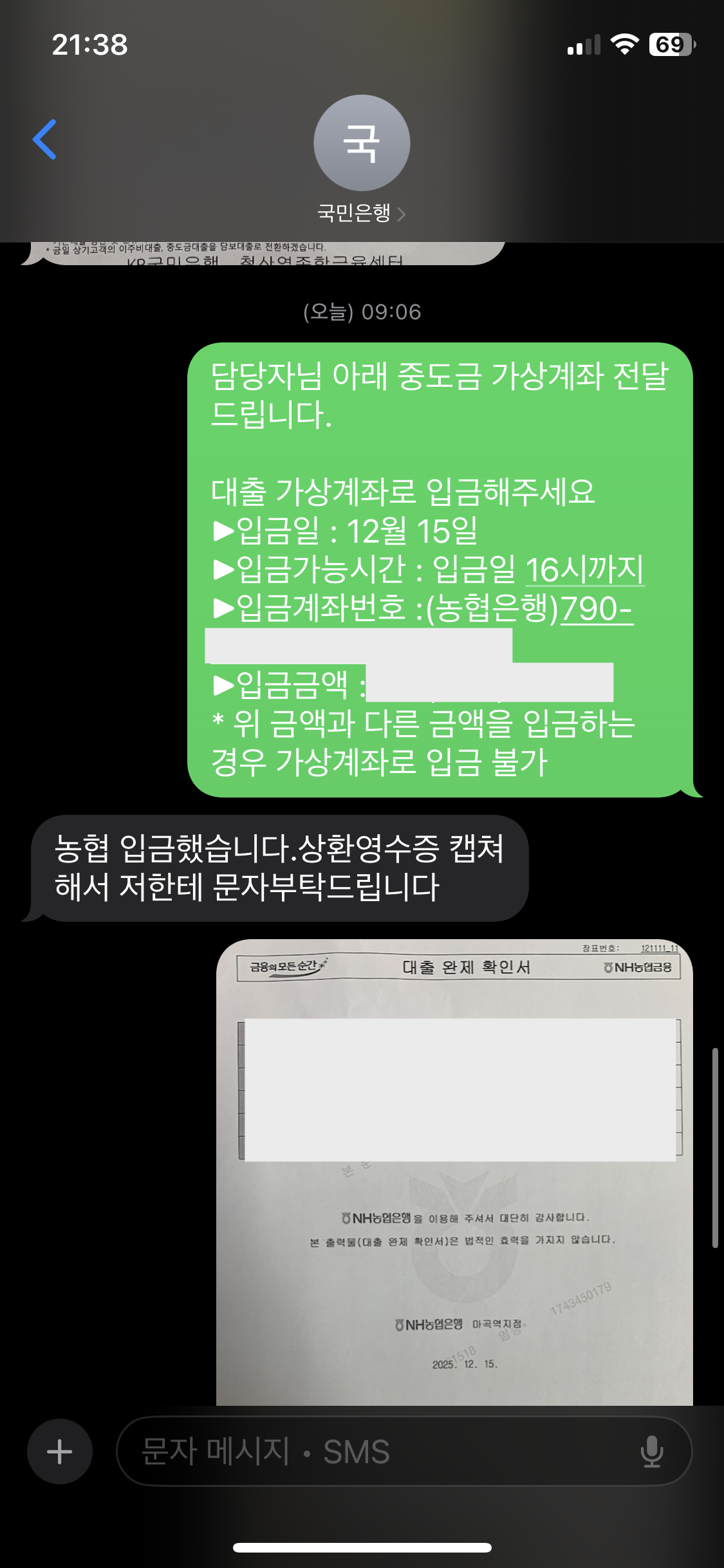 해당 계좌를 은행 직원분께 전달드리면 잔금을 상환하고 남은 금액에서 중도금을 상환하게 됩니다.